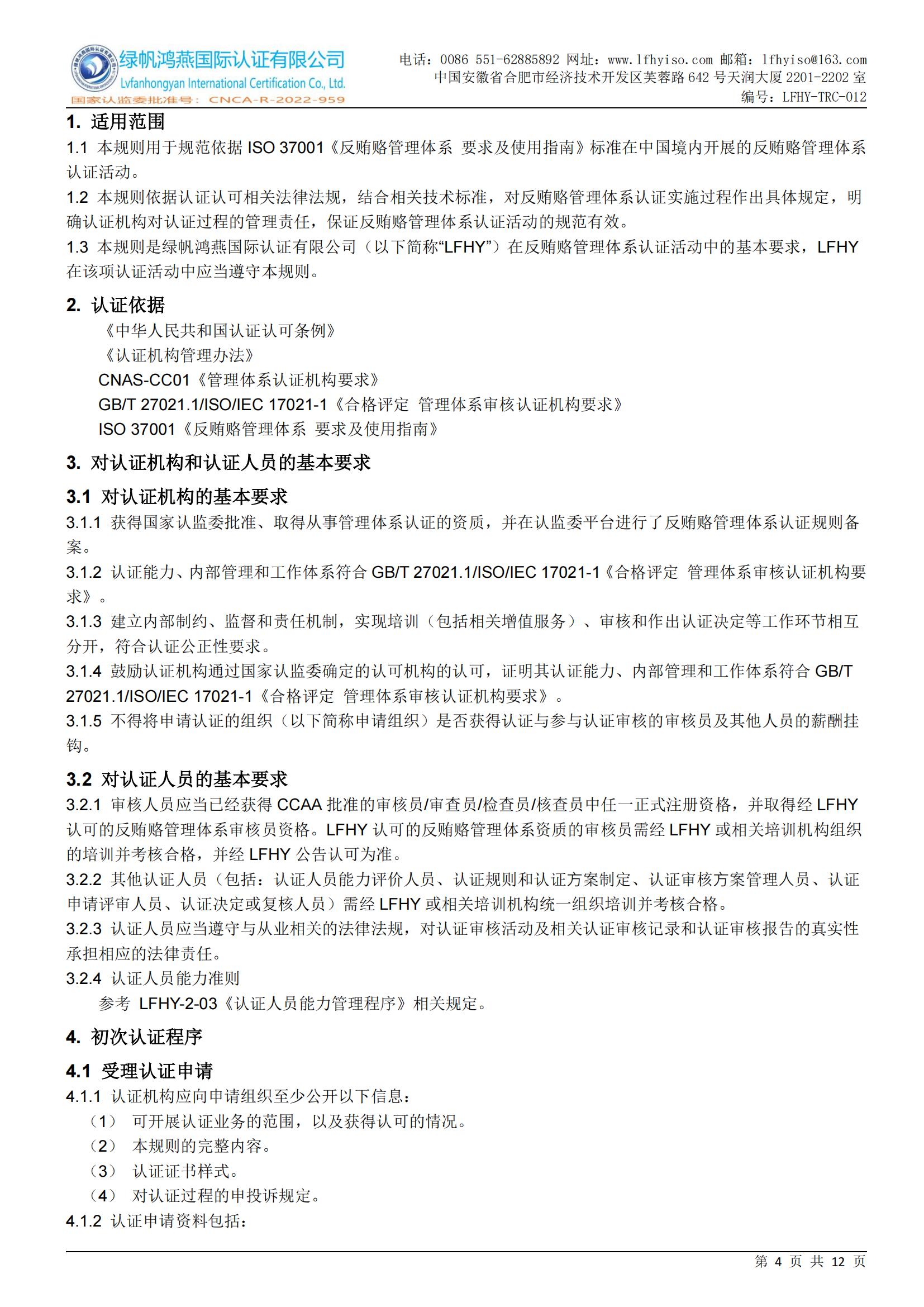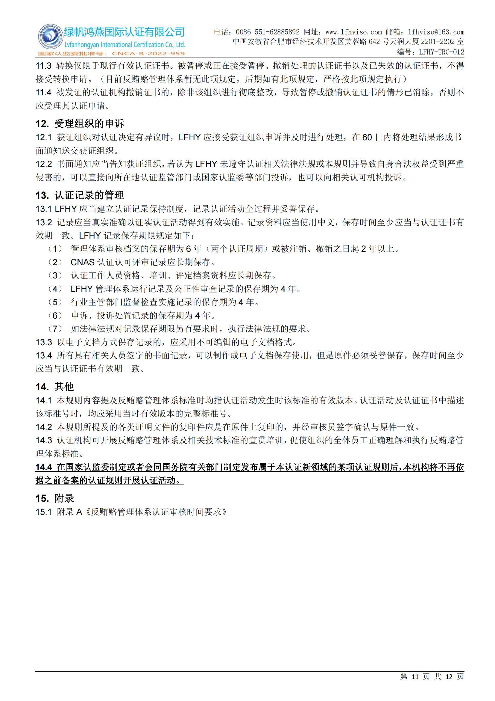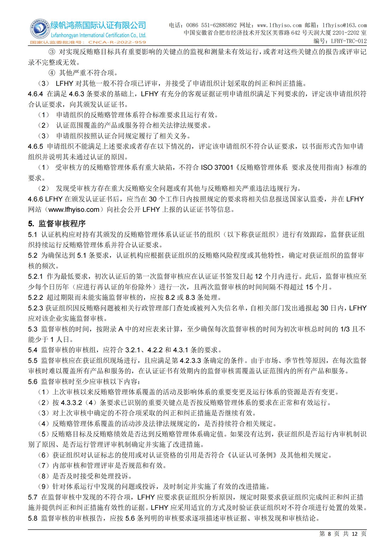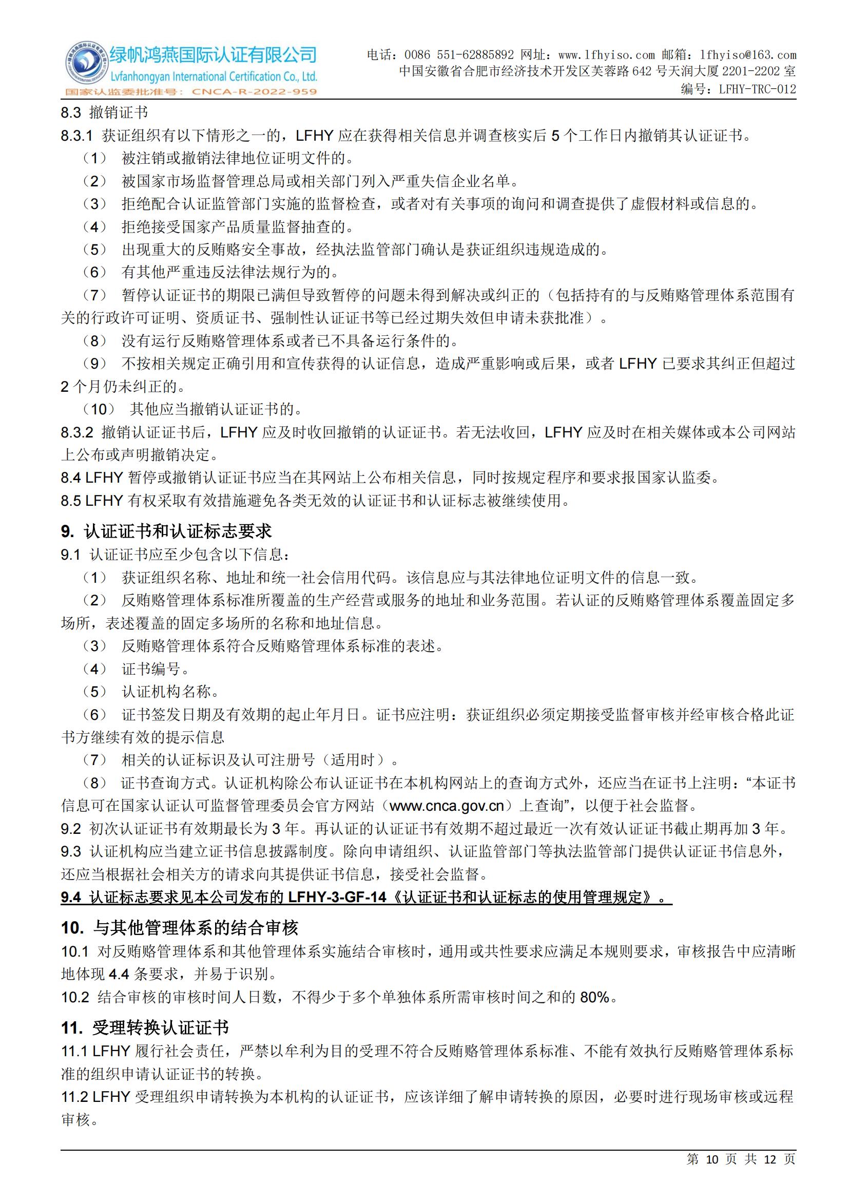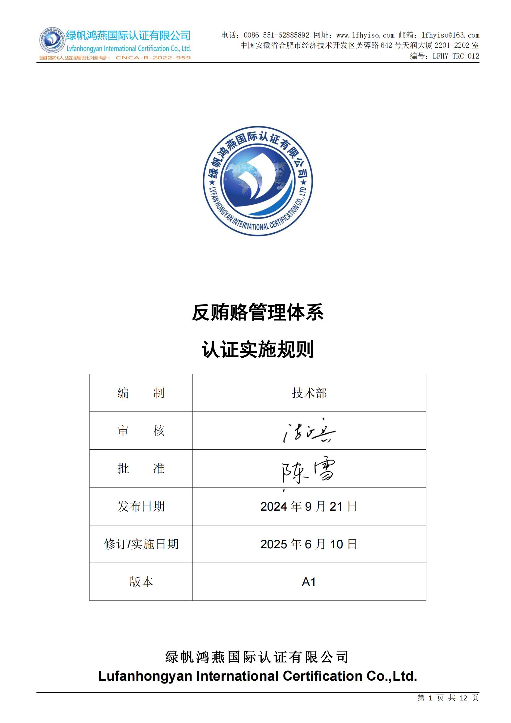 12==反賄賂管理體系認(rèn)證則規(guī)備案附件【20250610修訂】LFHY-TRC-012《反賄賂管理體系認(rèn)證實施規(guī)則》【20250610A1版】