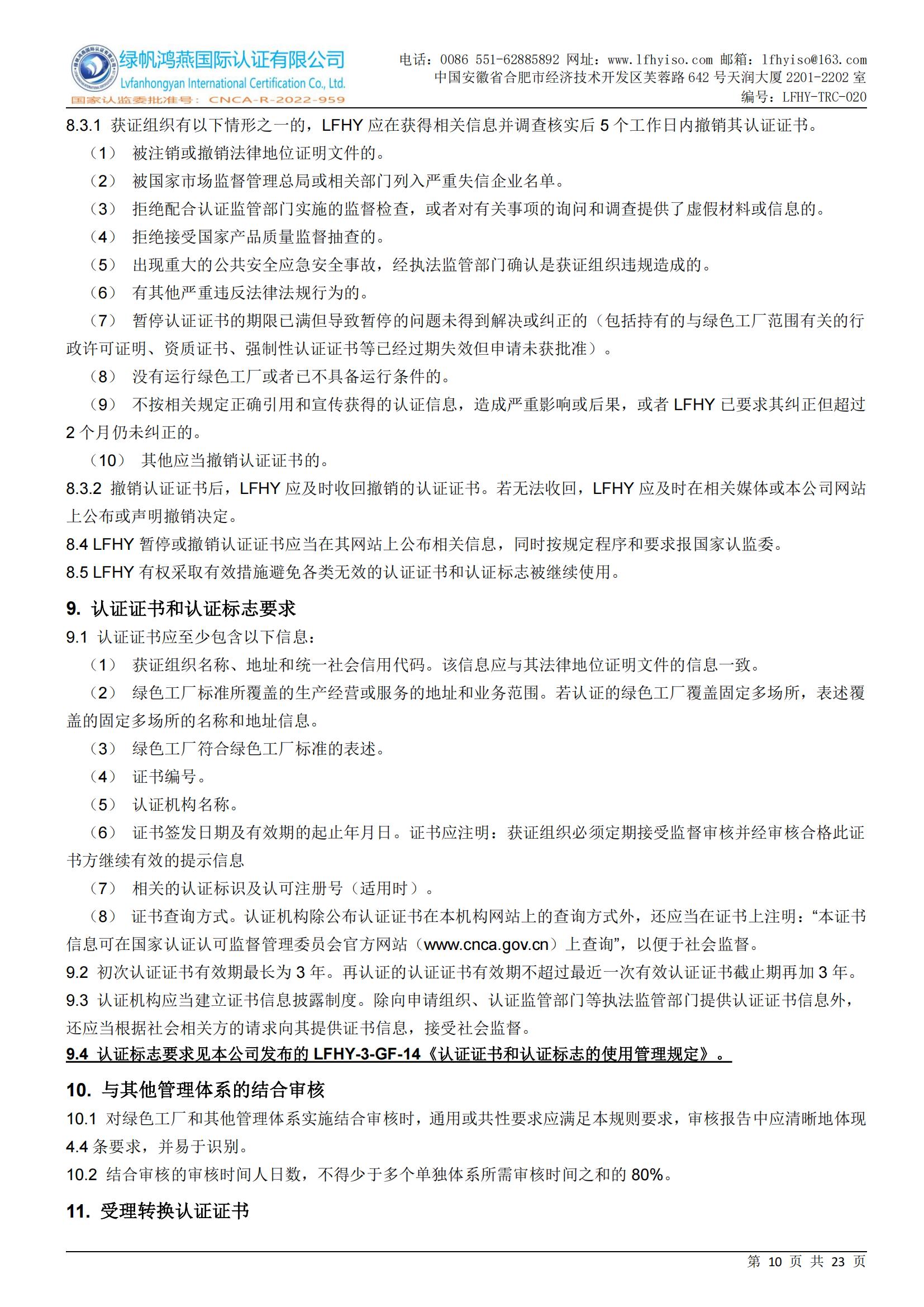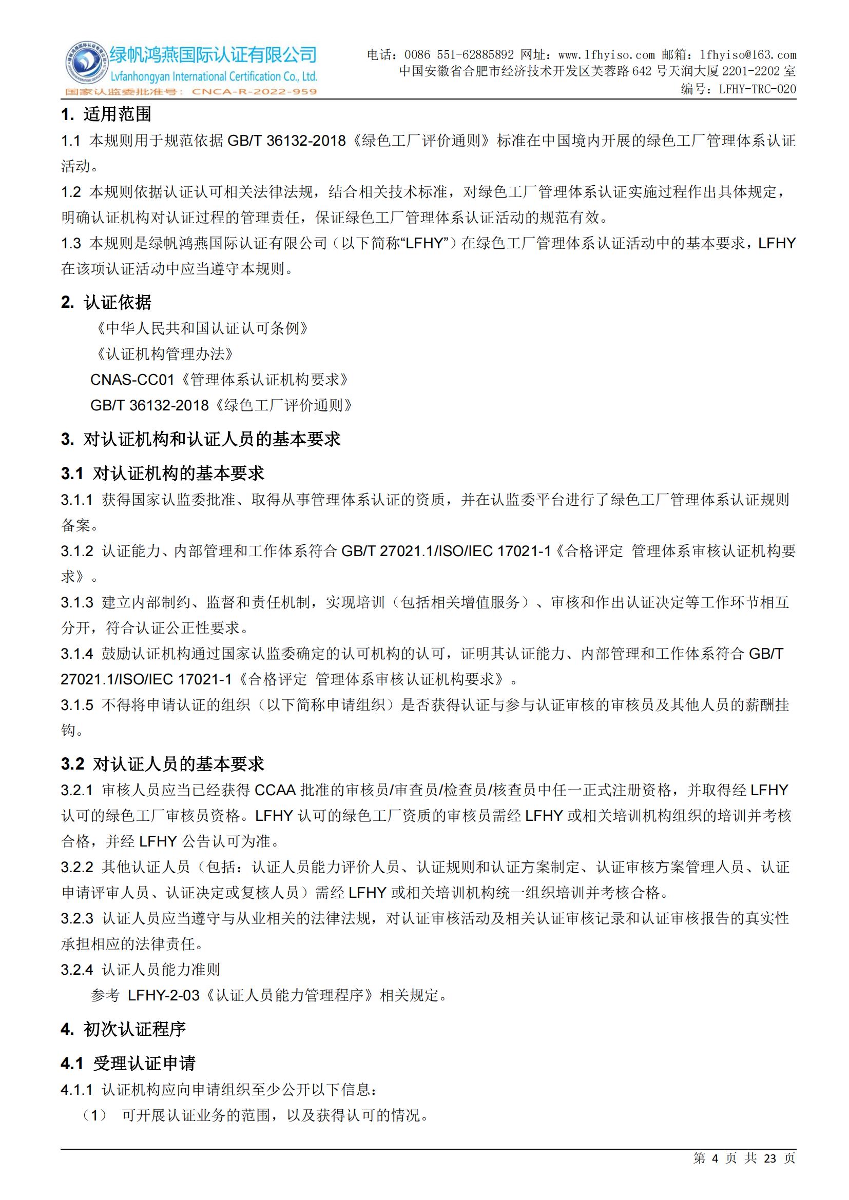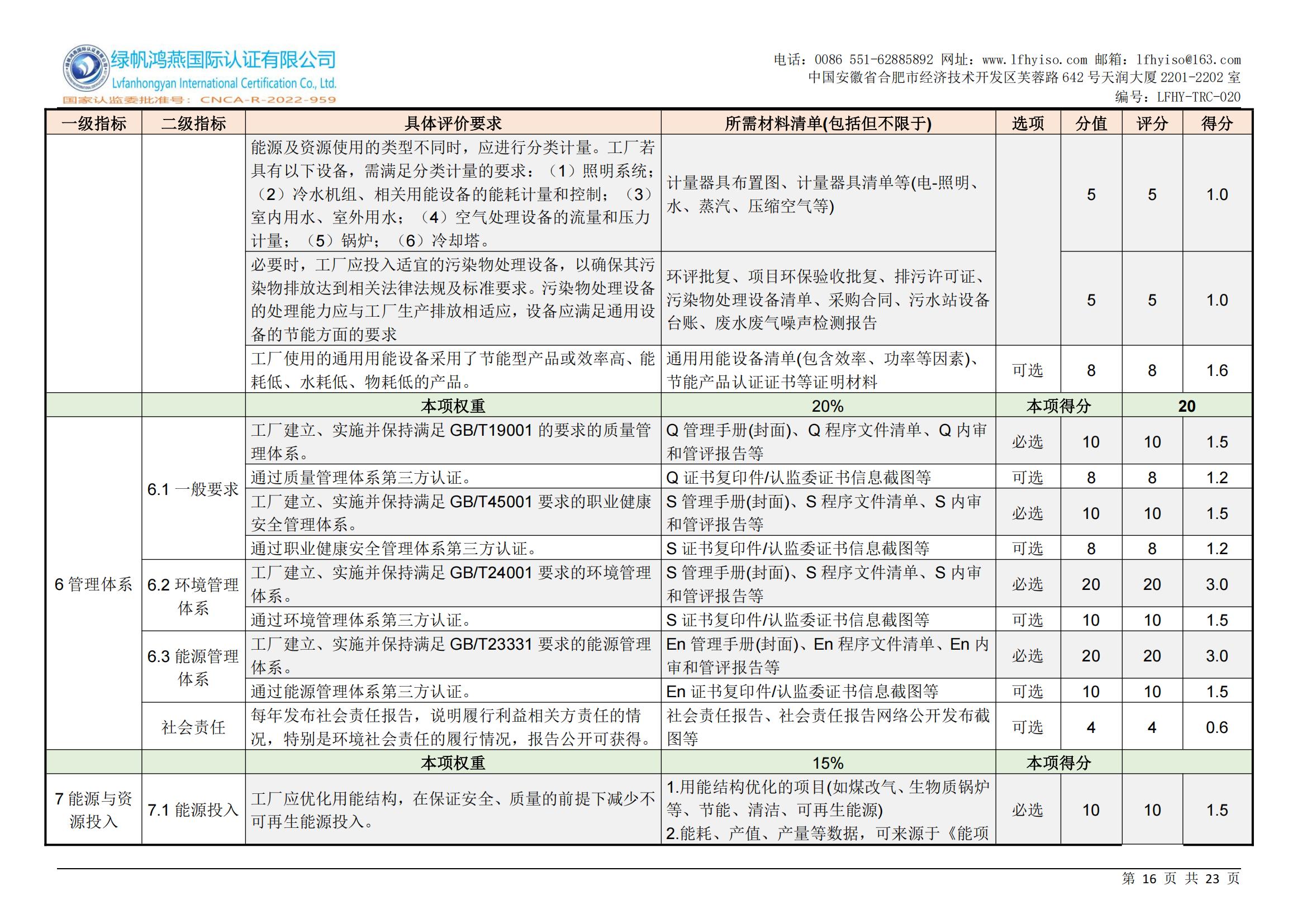 20-1==綠色工廠管理體系認(rèn)證規(guī)則備案附件【按GBT 36132-2018標(biāo)準(zhǔn)】【分級】【20250610修訂】LFHY-TRC-020《綠色工廠管理體系認(rèn)證實(shí)施規(guī)則》【20250610A1版】