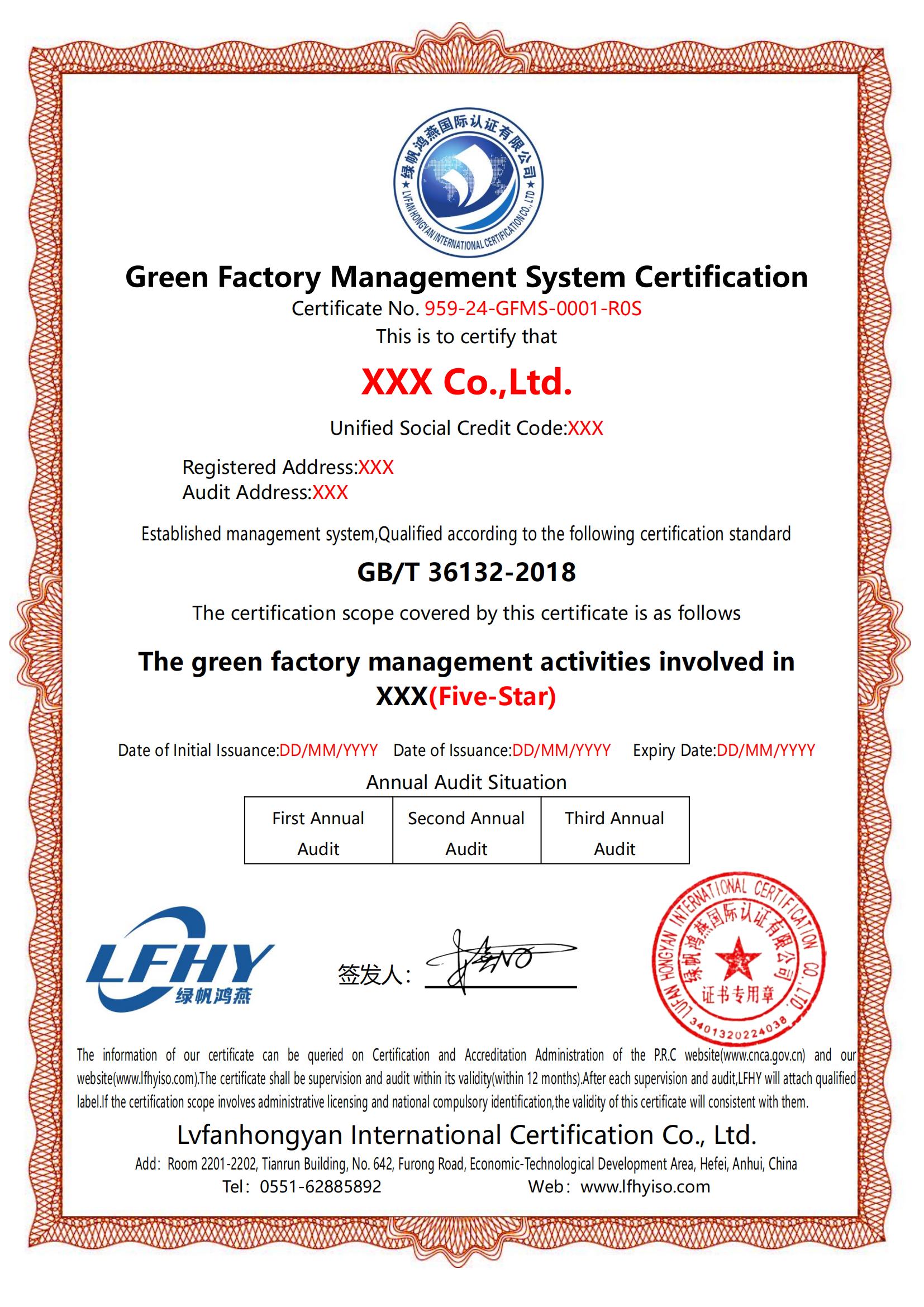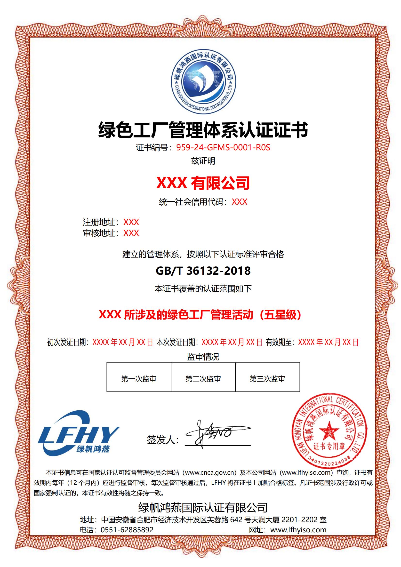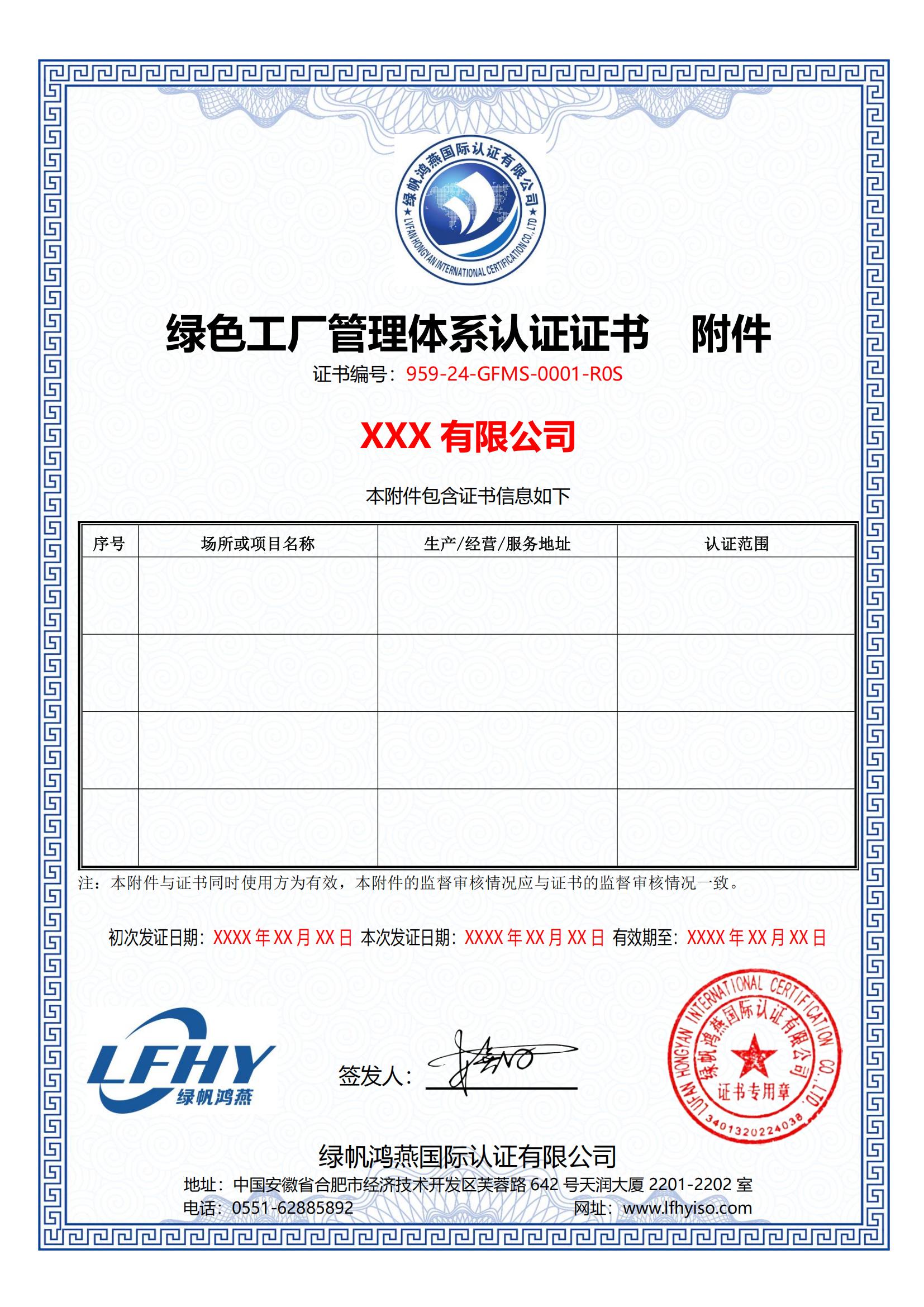 20-1==綠色工廠管理體系認(rèn)證規(guī)則備案附件【按GBT 36132-2018標(biāo)準(zhǔn)】【分級】【20250610修訂】認(rèn)證證書樣本(含附件)GFMS綠色工廠管理體系