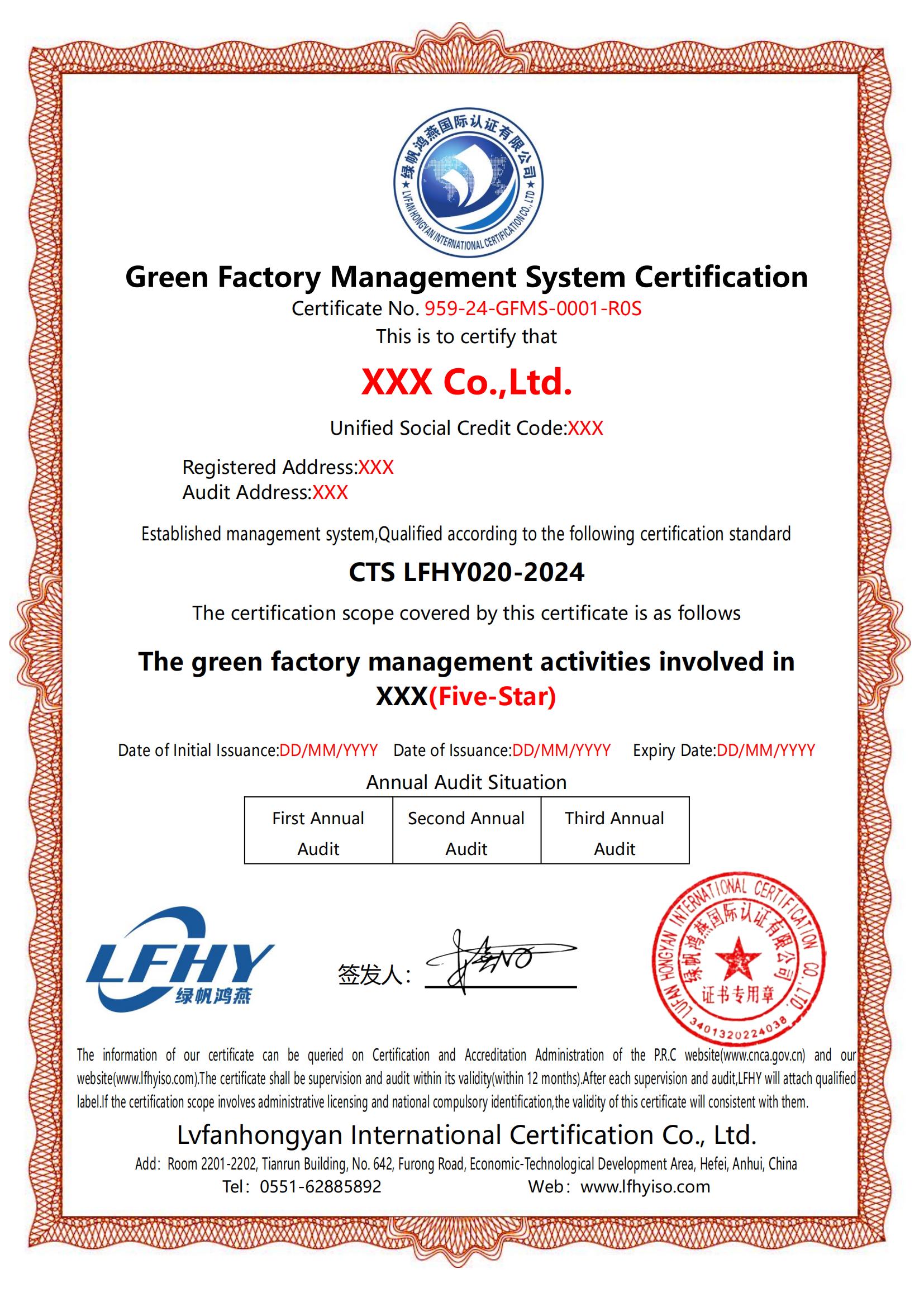 20-2==綠色工廠管理體系認證規(guī)則備案附件【按CTS LFHY020-2024本公司規(guī)范+分級】【20250610修訂】認證證書樣本(含附件)GFMS綠色工廠管理體系【20250610改】
