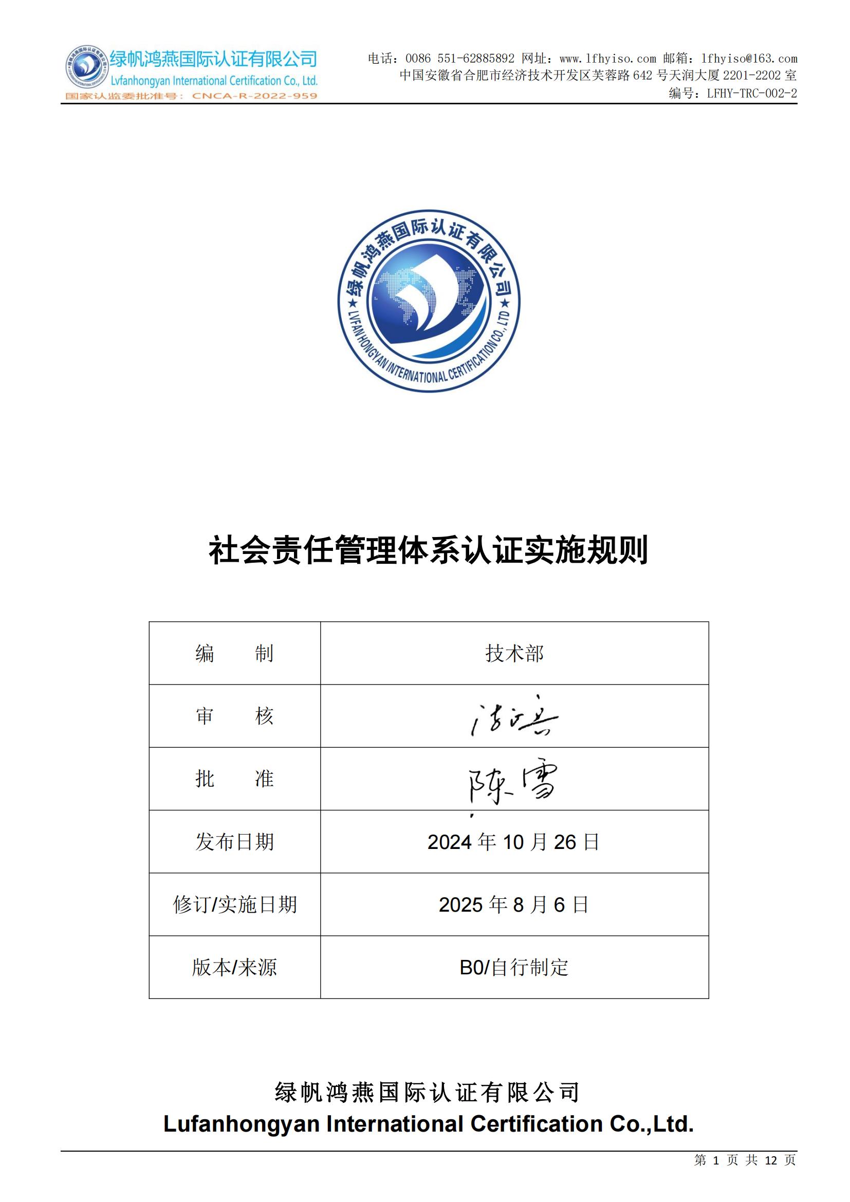 綠帆鴻燕國(guó)際認(rèn)證有限公司(簡(jiǎn)稱LFHY)是經(jīng)國(guó)家認(rèn)證認(rèn)可監(jiān)督管理委員會(huì)批準(zhǔn)的第三方認(rèn)證機(jī)構(gòu)