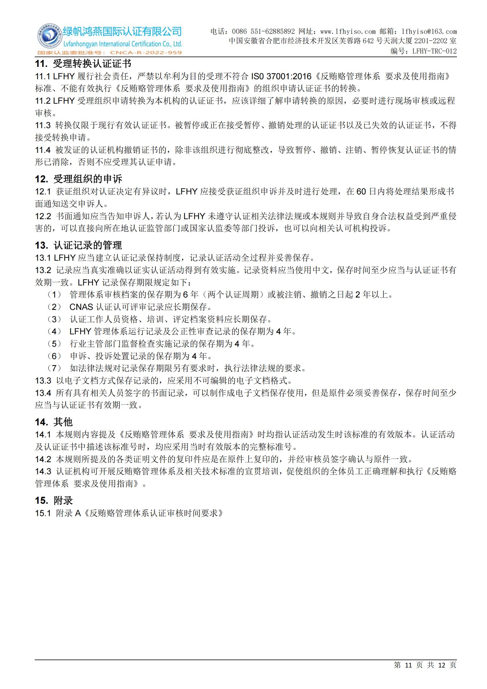 LFHY-TRC-012《反賄賂管理體系認證實施規(guī)則》