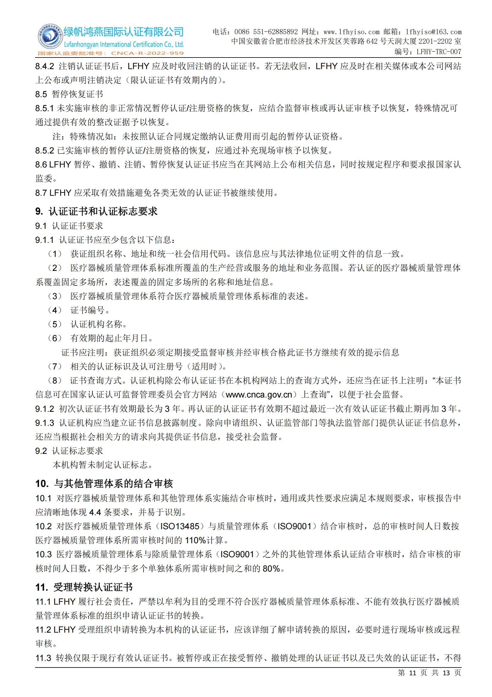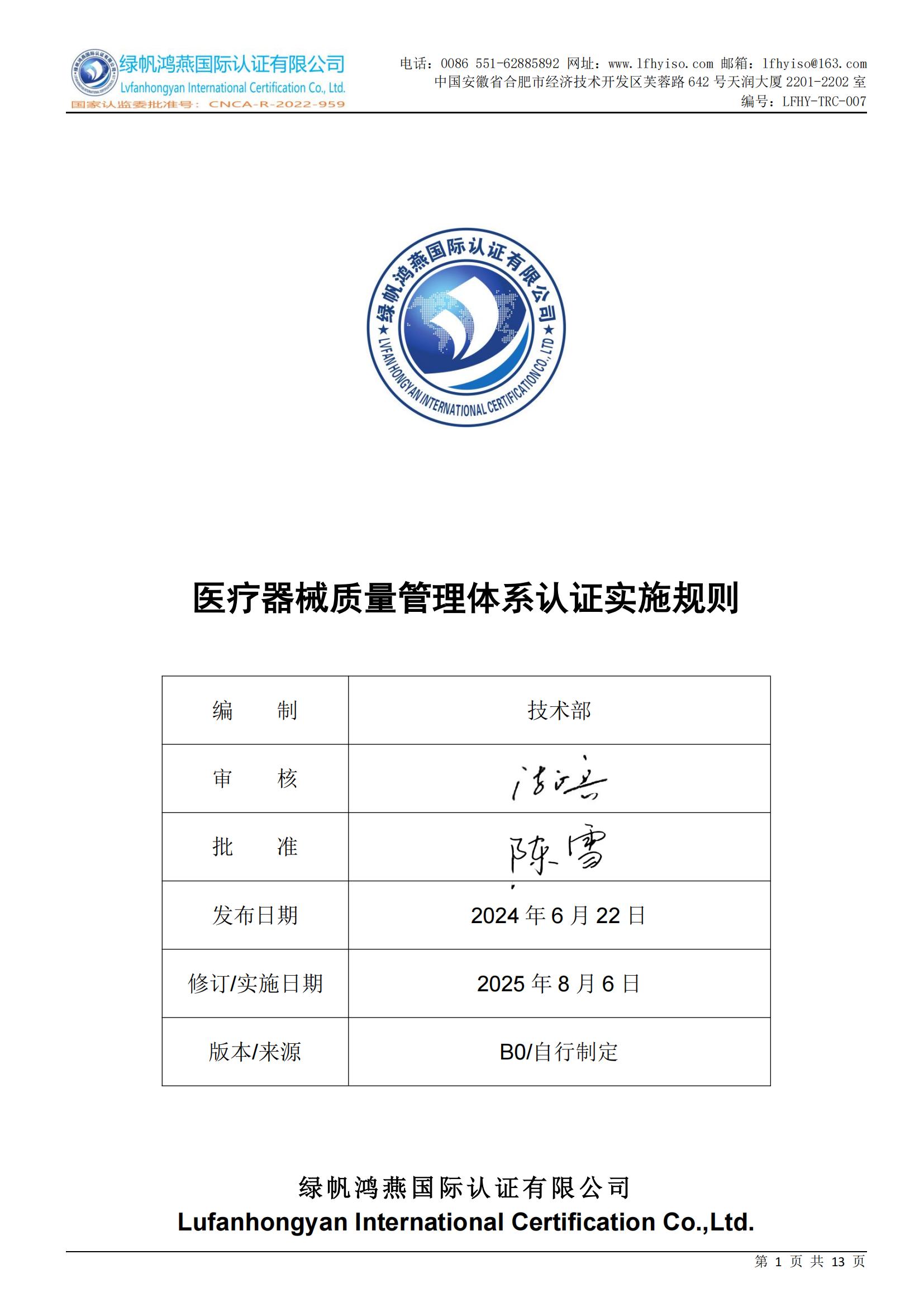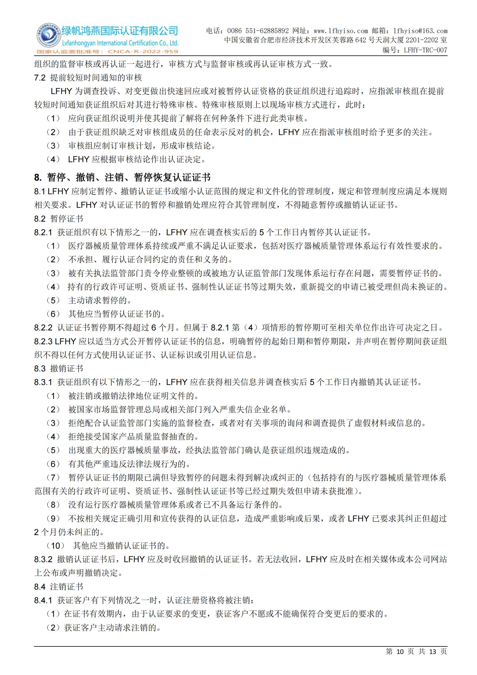 LFHY-TRC-007《醫(yī)療器械質(zhì)量管理體系認(rèn)證實(shí)施規(guī)則》