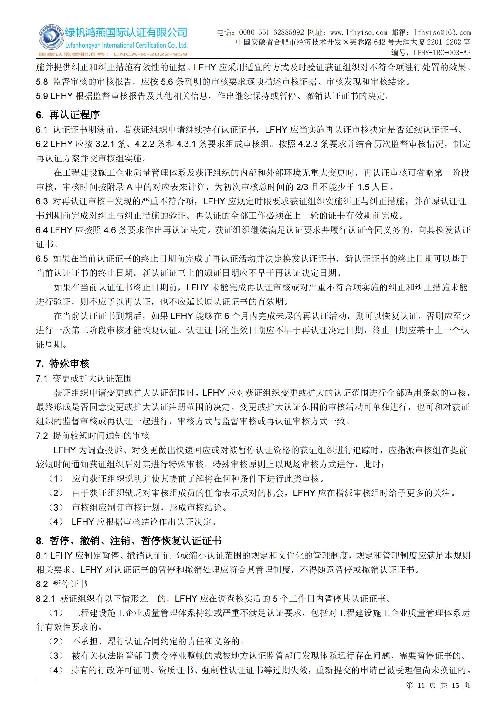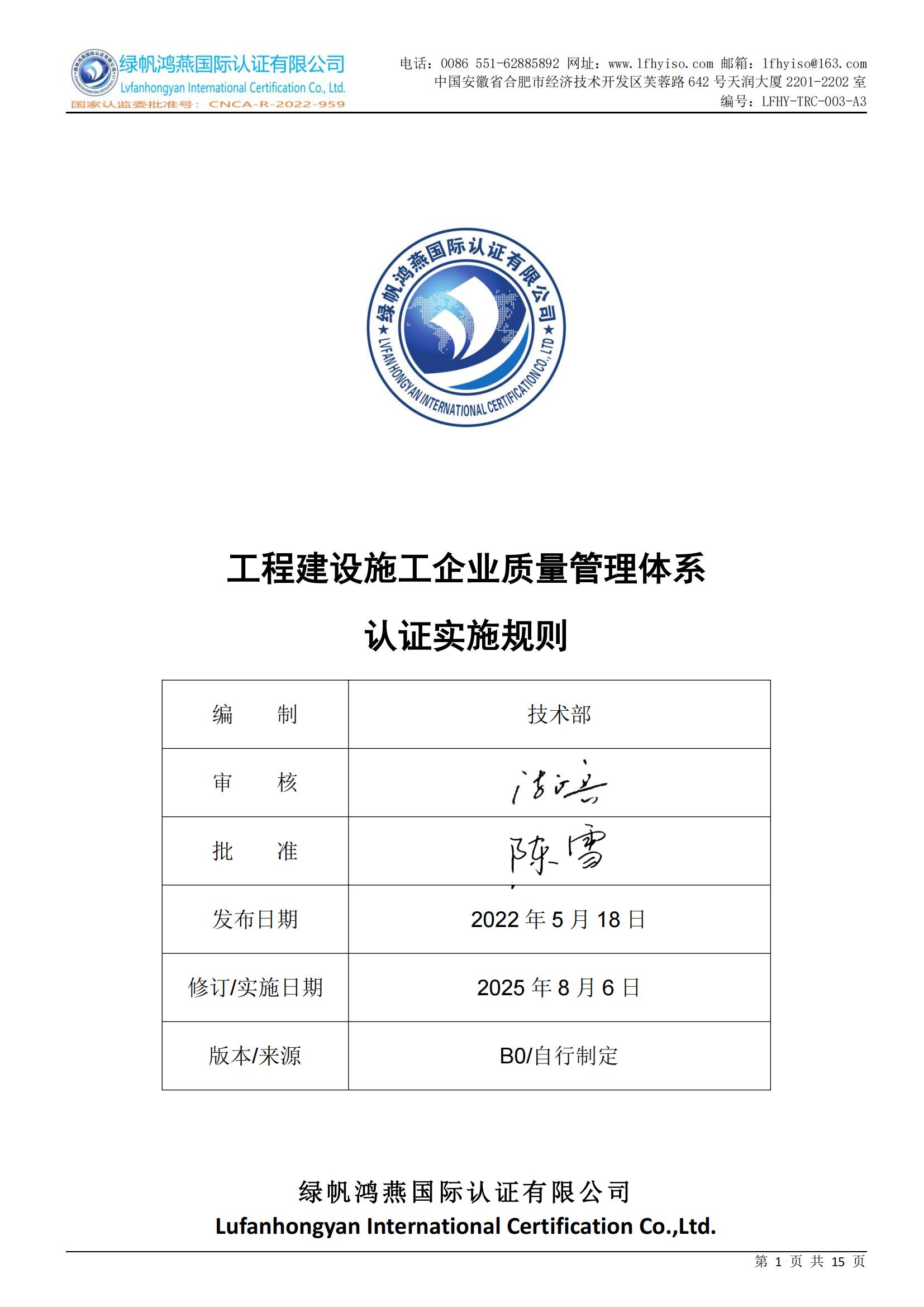 LFHY-TRC-003-A3《工程建設(shè)施工企業(yè)質(zhì)量管理體系認(rèn)證實(shí)施規(guī)則》
