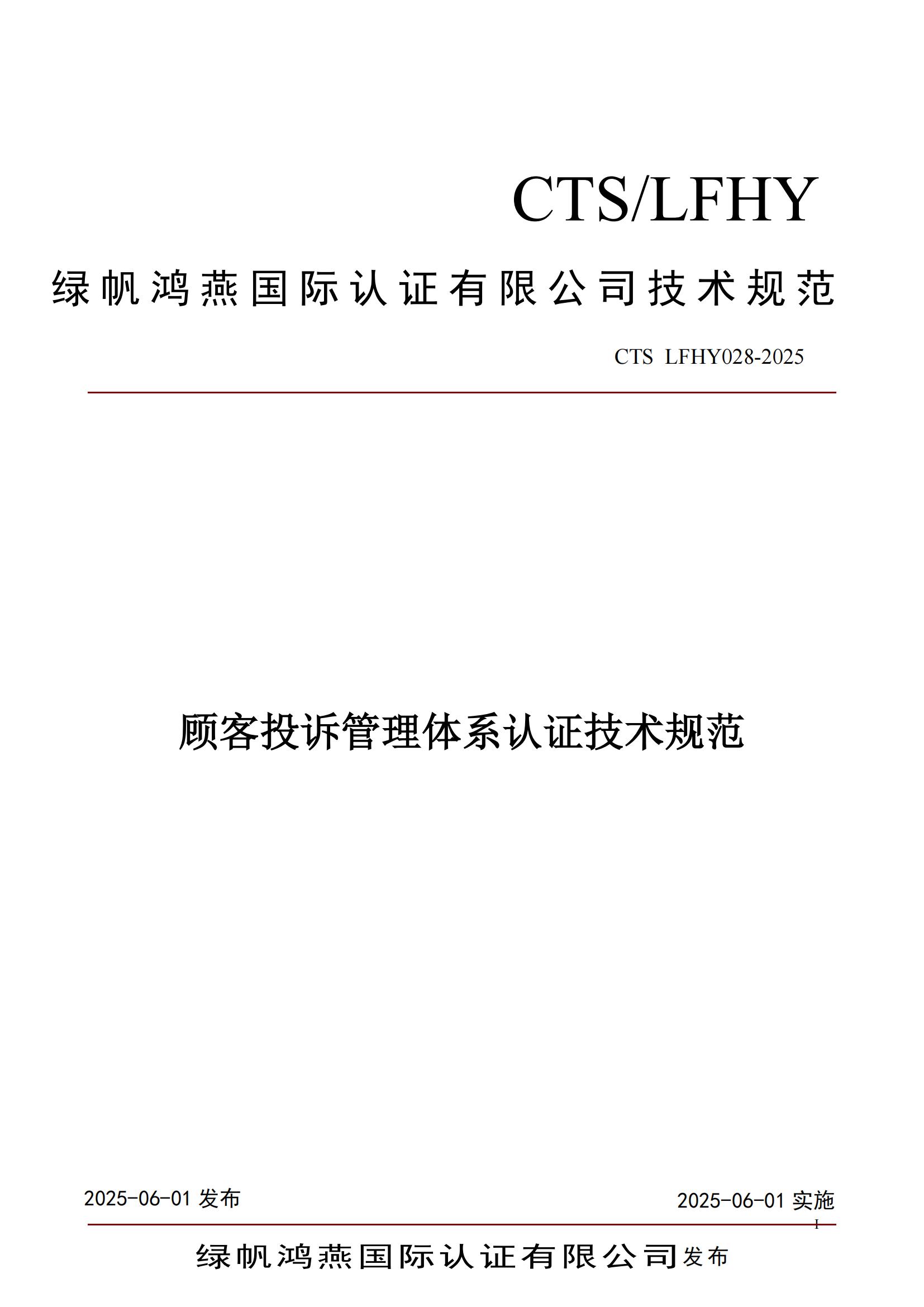 CTS LFHY028-2025《顧客投訴管理體系認(rèn)證技術(shù)規(guī)范》