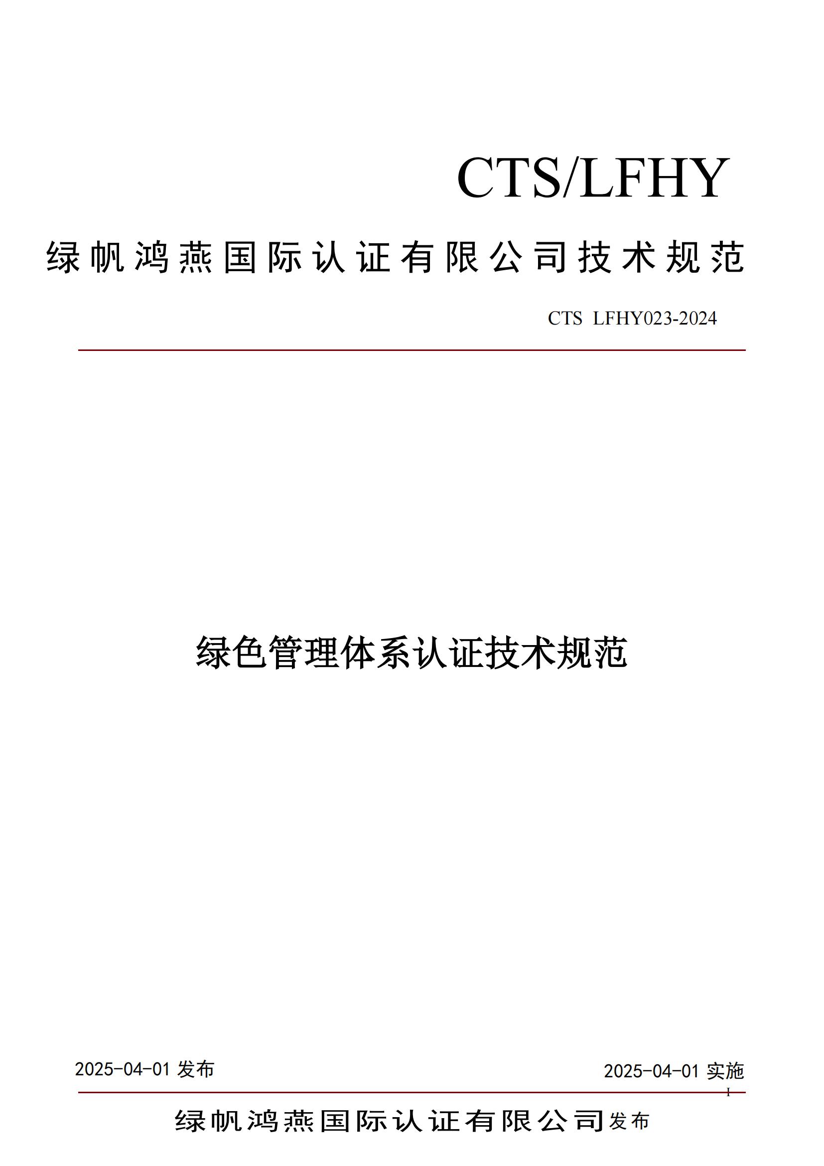 CTS LFHY023-2025《綠色管理體系認(rèn)證技術(shù)規(guī)范》