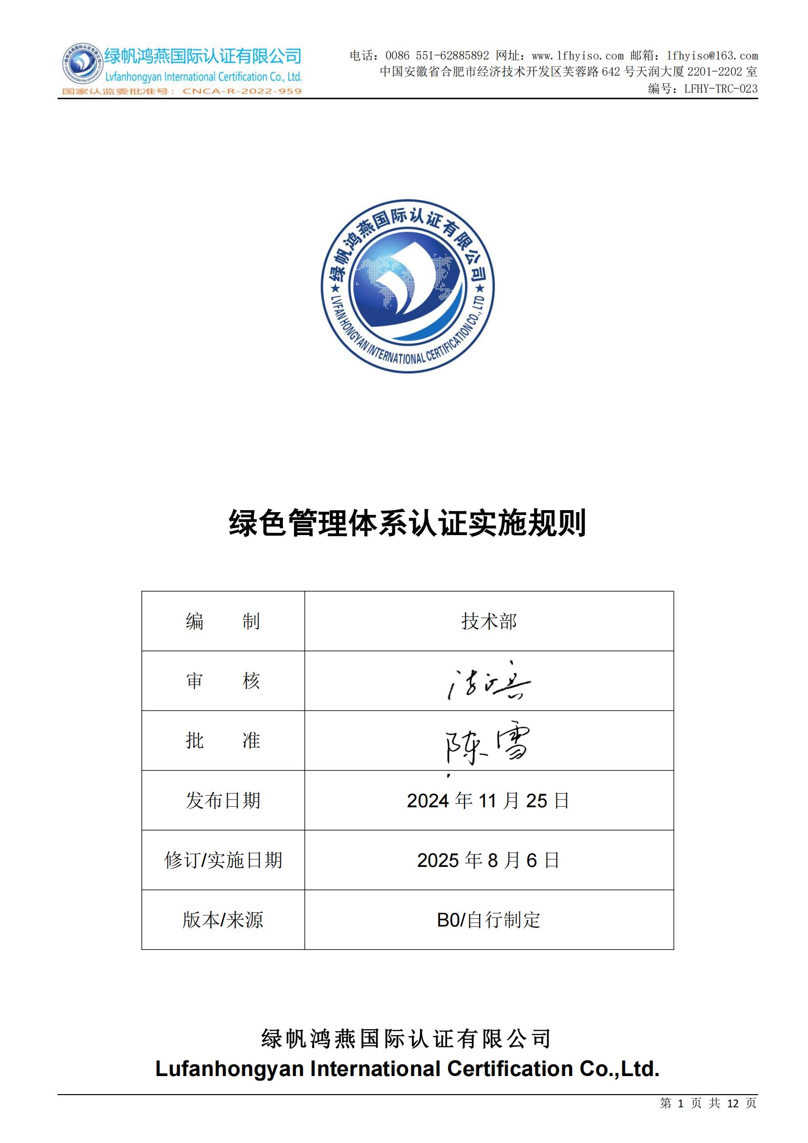 LFHY-TRC-023《綠色管理體系認證實施規(guī)則》