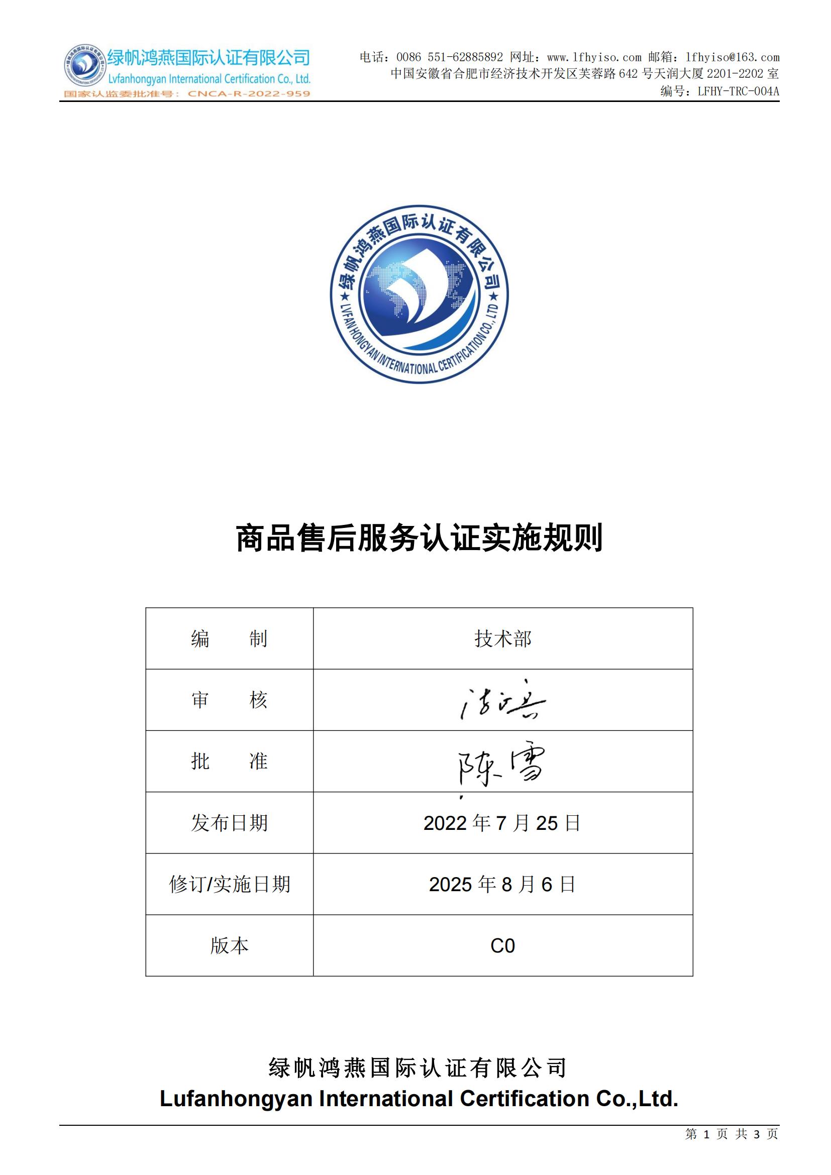 LFHY-TRC-004A《商品售后服務(wù)認(rèn)證實(shí)施規(guī)則》【清稿】